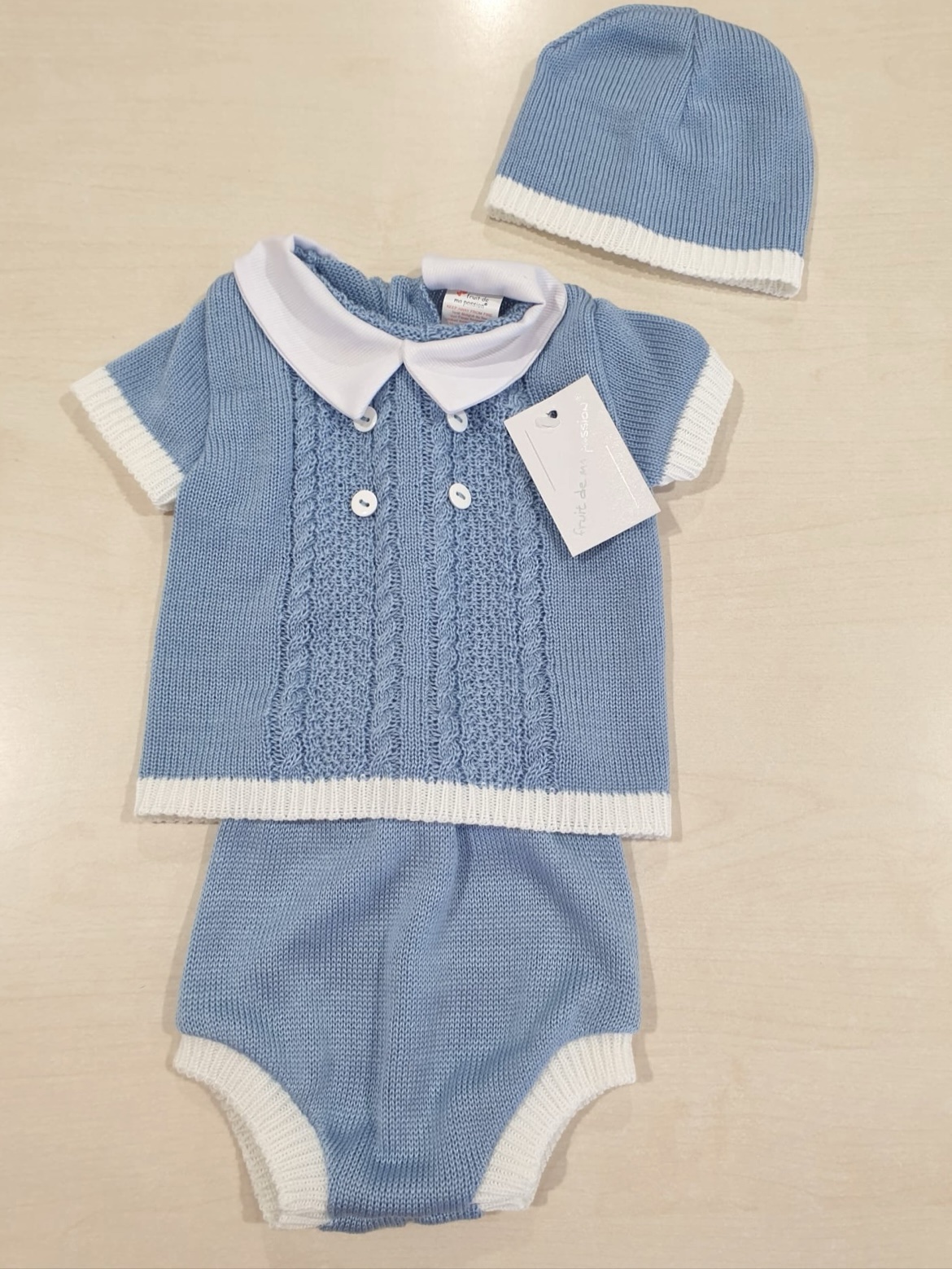 Maglia,pantaloncino e cuffietta in filo 100% dralon anallergico